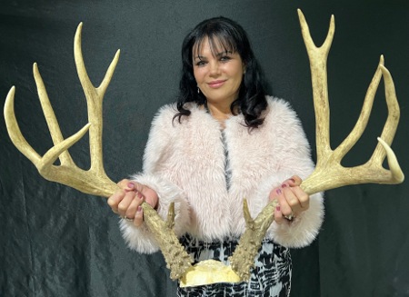 MD-614 GORGEOUS FREAK DEER JUST UNDER 17" WIDE AND FLAWLESS TIPS~ SUPER NICE COLOR~ CLEANED FULL SKULL BUT PAINTED WHITE~ $75 |