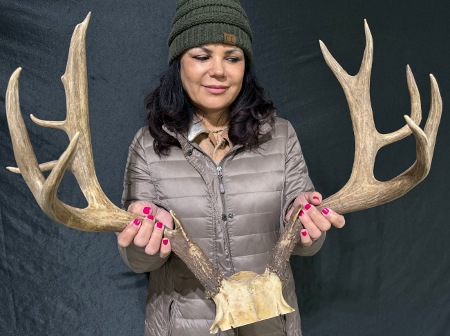MD-681 SHOT IN 2025!! SO SUPER SUPER FRESH!! MONTANA MULE DEER RACK SCORING 160-0" BC GROSS~ OUTSIDE SPREAD IS 23-4"~ H1'S ARE 4-4" AND 4-5"~ G2'S ARE 13-2" AND 9-3"~ MAIN BEAMS ARE 22-0" AND 21-1"~ COUPLE TINY NATURALLY CHIPPED TIPS WITH GORGEOUS COLOR~ BROW TINES DIDN'T GROW~ $200 |